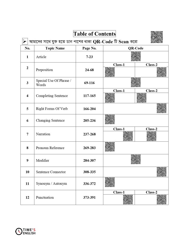 - গুরুত্বপূর্ণ টপিকের ভিডিও ক্লাস গুলোর “QR-Code” দেওয়া আছে। যাতে কোনো শিক্ষকের শরণাপন্ন না হয়ে বাসায় বসে Grammar এ “৬০ এ ৬০” পেতে পারো।