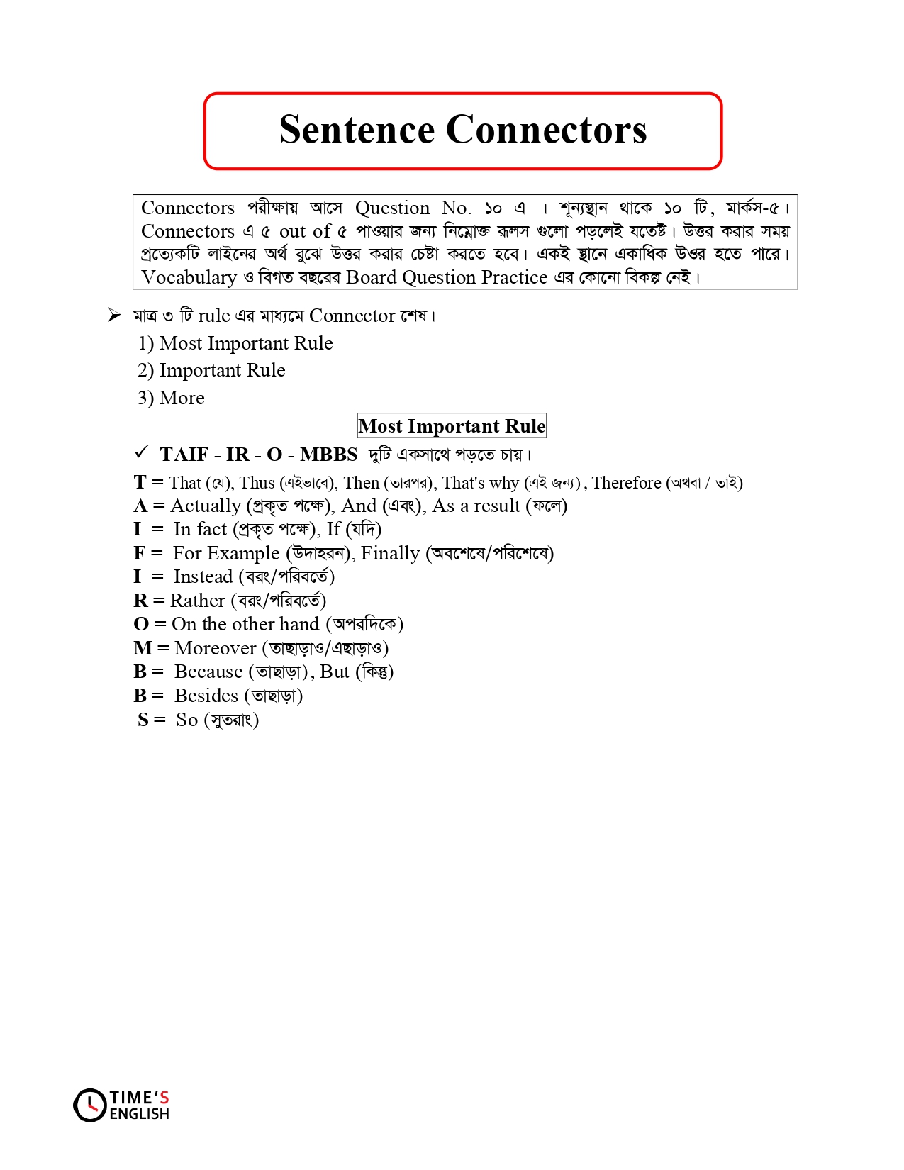 প্রচুর পরিমানে “শর্টকাট টেকনিক” দেওয়া হয়েছে। সম্পূর্ণ বঙ্গানুবাদ করে দেওয়া আছে বোর্ডের প্রশ্নগুলোর। ৫০% বোর্ডের প্রশ্নেগুলোর উওর ব্যাখ্যা করে দেওয়া আছে। গুরুত্বপূর্ণ টপিকের ভিডিও ক্লাস গুলোর “QR-Code” দেওয়া আছে। যাতে কোনো শিক্ষকের শরণাপন্ন না হয়ে বাসায় বসে Grammar এ “৬০ এ ৬০” পেতে পারো। এছাড়াও ২০২৪ সালের বোর্ডের প্রশ্নগুলো যুক্ত করা হয়েছে।